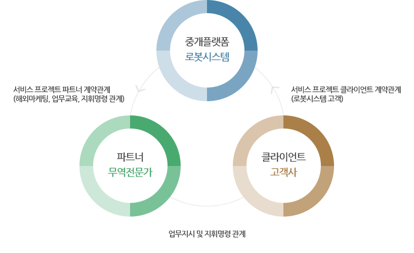 클라이언트가 로봇시스템에 “무역전문가 중개플랫폼 대행서비스” 프로젝트를 등록하여 프로젝트에 지원한 파트너를 면접을 통하여 직접 선발하고 이렇게 선발된 파트너는 클라이언트가 원하는 대행서비스 업무를 수행하게 되는 서비스입니다.